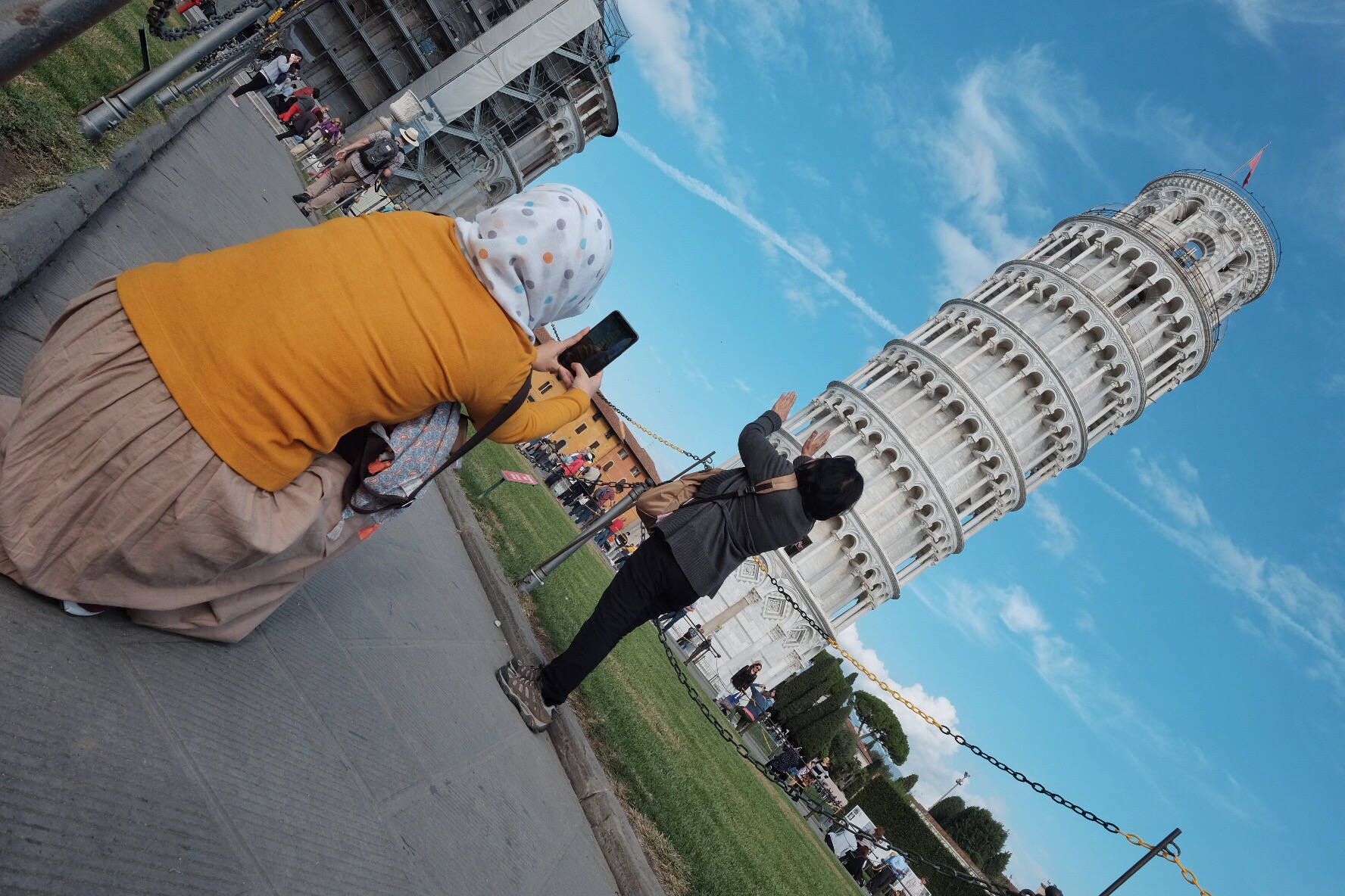 It is obviously a very popular tourist place, where tourists from all around the world tried to strike a pose with the leaning tower. Just like what we did below: