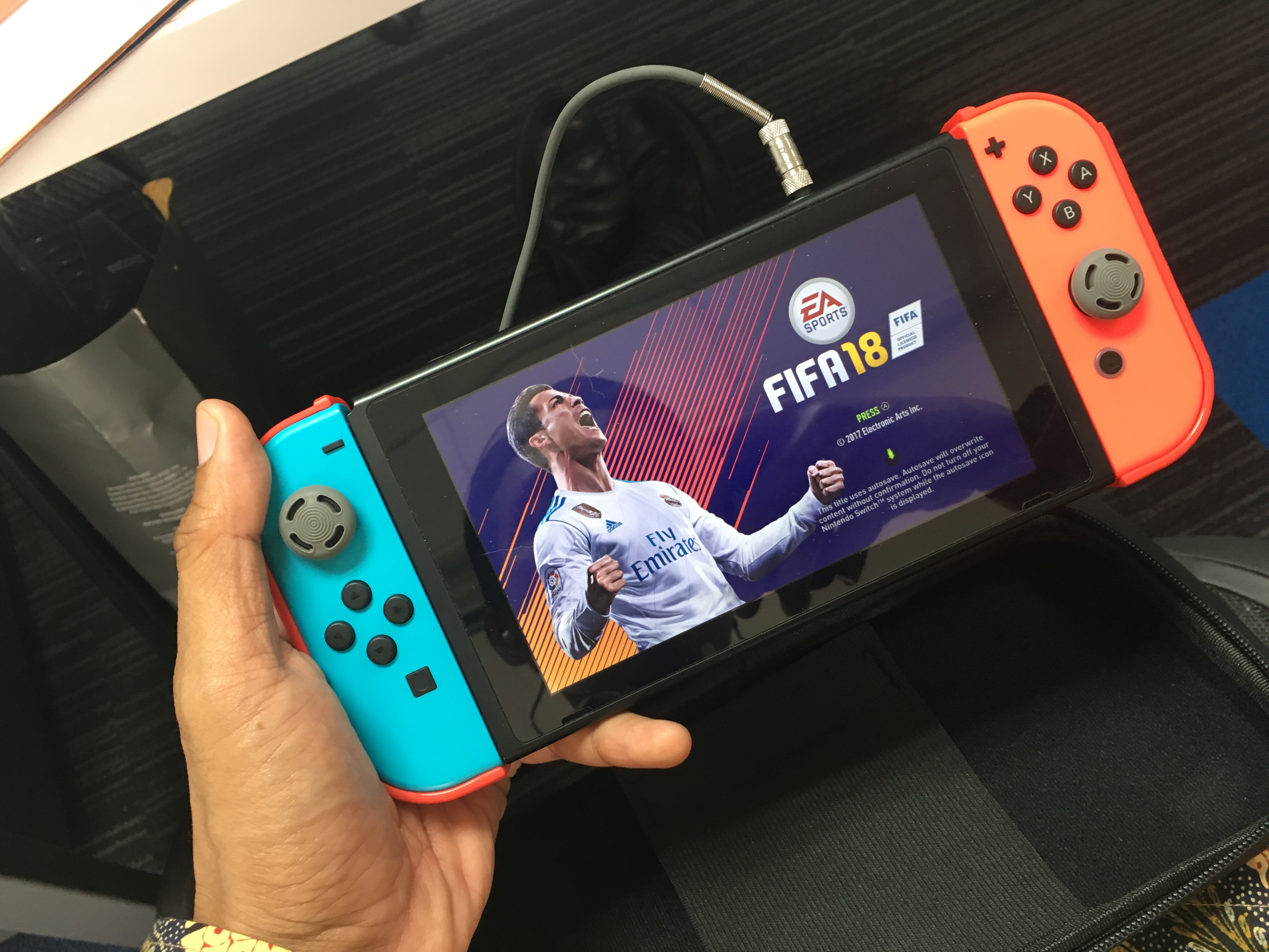 - The device is well built. The Joycon (the controllers which can be detached from the main unit for two players game) are surprisingly playable. Tried to play FIFA 18 two player mode for few minutes. While we still need to learn how to pass and dribble the ball properly, but the great idea and concept is definitely can be executed. Would be a great buddy activity when you’re hanging out.