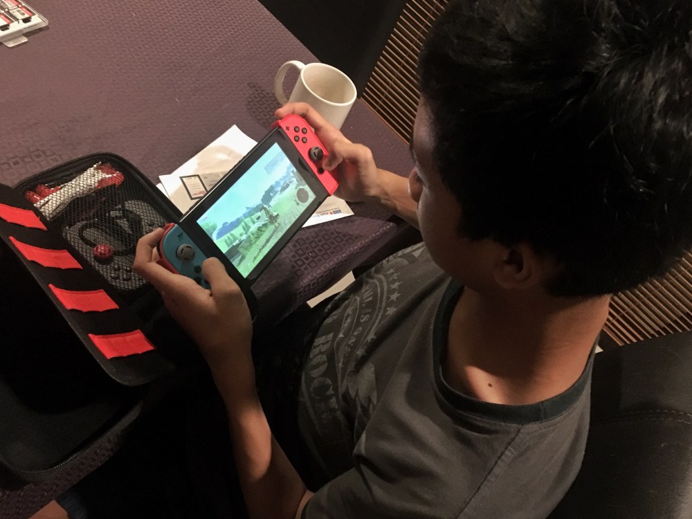 As when I arrived at home and invited Rafif to try the Switch, he is really impressed with Switch and immediately roam the open world of Zelda.