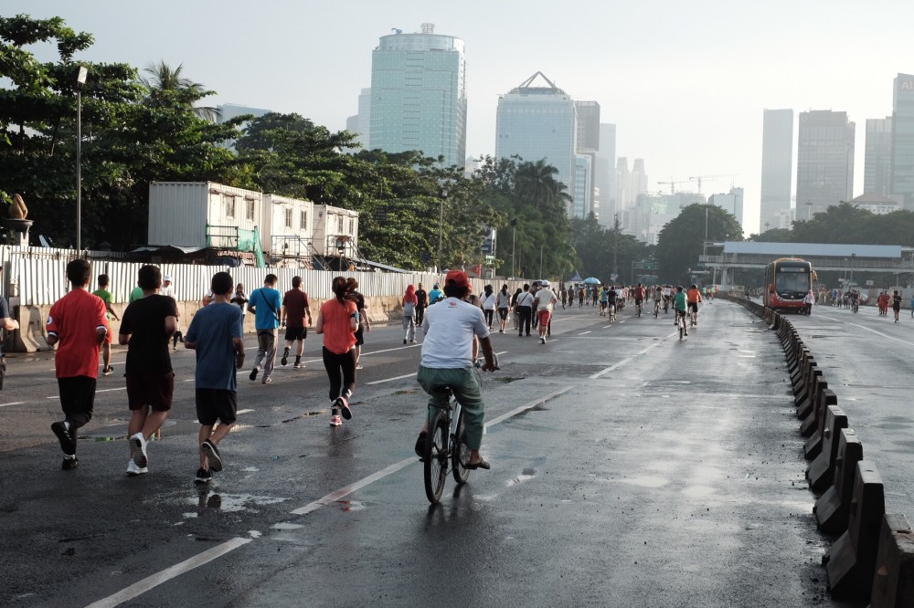 Leaving home around 5.45, we arrived at CFD around 6.15. The southern part of Sudirman street was not too crowded, so we had quite good ride with hundred of runners.