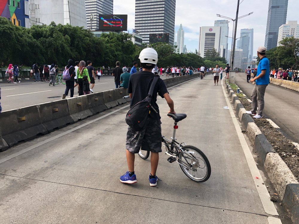 After spending quite bit sometime in GBK, we’re ready to continue our ride to look for nearest restaurant, as we have not had a breakfast. But alas, a minute after we left GBK complex, Rafif’s bike pedal fell off, and we didn’t have wrench to put it back to work. So our ride this morning ended prematurely. Fortunately, ours are folding bikes. So we decided to call Uber and ride the car back home. Nonetheless, it’s still a nice CFD ride, and we’re both looking forward for our next ride!