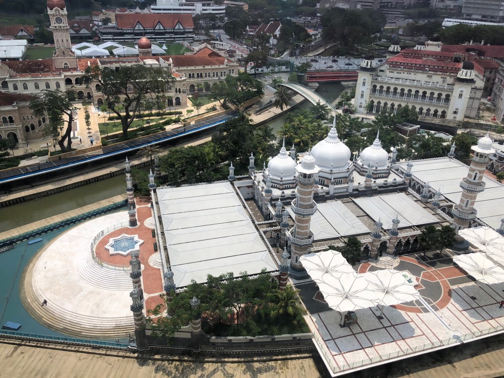 The office meeting room where we spend our day look over at the historic mosque in central of Kuala Lumpur. People said this js the origin of this capital city of Malaysia. “Kuala” means “river”, while “Lumpur” means “mud”. The mosque is sitting at the top of the muddy plains, which was formed because of the meeting point of two rivers: Gombak river and Klang river. Such a historic site, and proud to be working in a bank that is central to KL’s development since hundreds years ago.