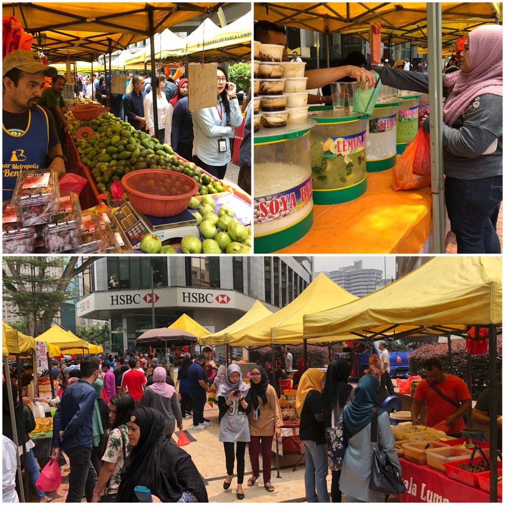 Alhamdulillah it’s Friday, and it seems to be also a special day in Kuala Lumpur. In front of our bank’s hall, near Jalan Ampang, yellow tents are erected, housing many variety of sellers, from food, drinks, fruit to clothings. We call it “pasar kaget” back home in Jakarta (literal translation: surprise/sudden market ☺️)