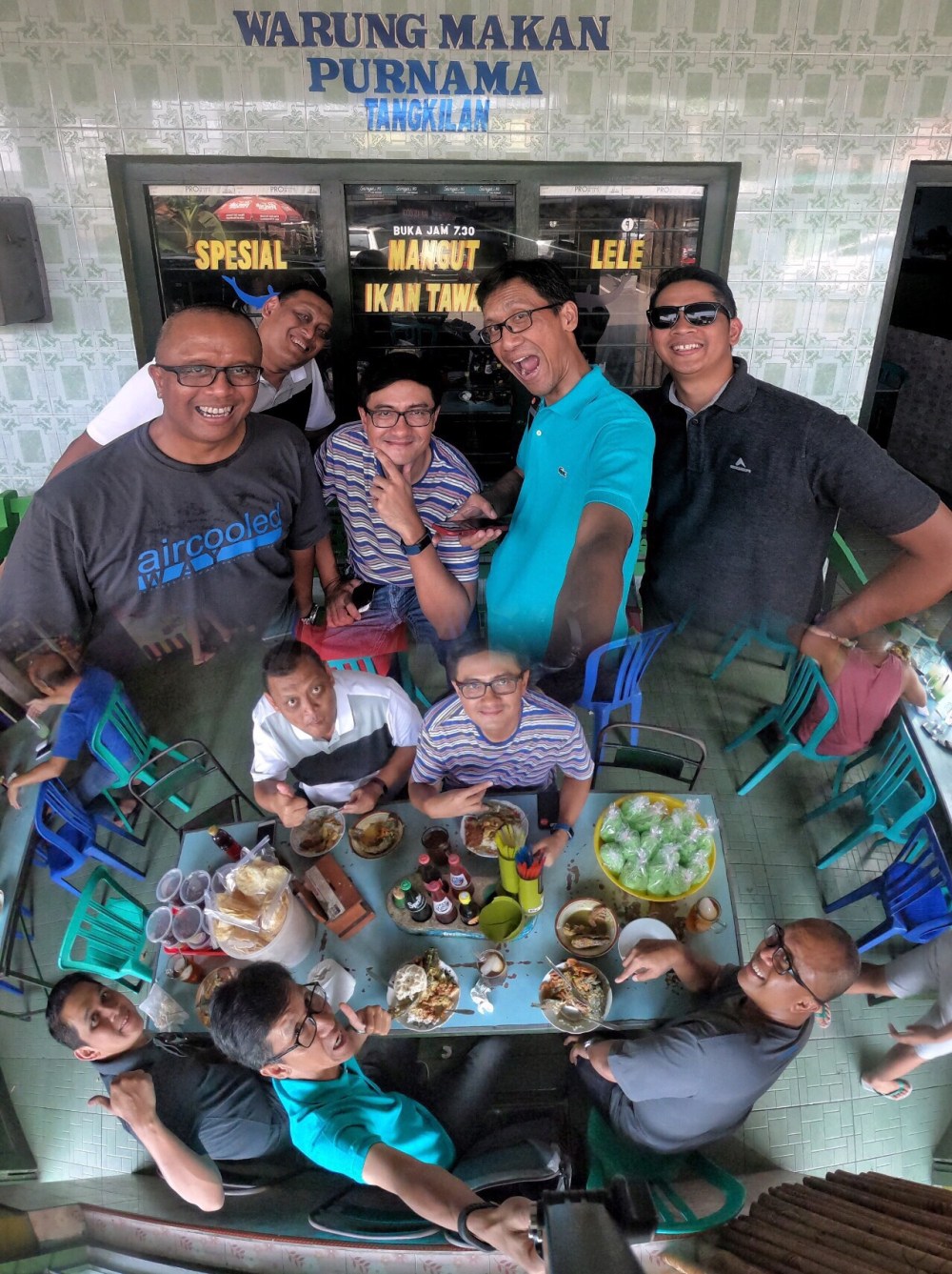 Coming back from Borobudur Golf Course, Magelang, we stop for lunch at Warung Makan Purnama. The restaurant has special dishes: “Mangut”, which is one of special dishes in Central Java. It’s difficult for me to describe Mangut, but let me say it’s a spicy-yellow-coconut soup poured into variety of smoked-meat, mainly fish or duck.