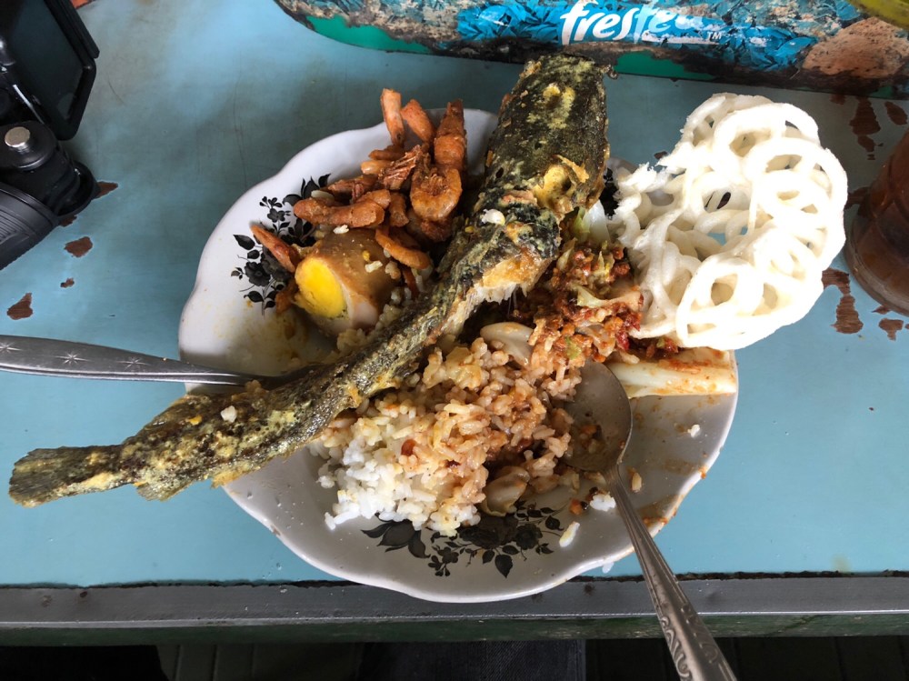I picked their specialty, which is catfish. It comes with pecel (Indonesian salad with peanut sauce), and I also ordered side-dish of dried prawns and roasted egg. Gosh, what a combination I picked. It tastes like heaven! The combination of spicy, sweet and salty. Also the soft meat of the catfish is combined with the crunchy form of dried prawns and crackers. I can say it’s one of the best dish I had this year! No kidding.