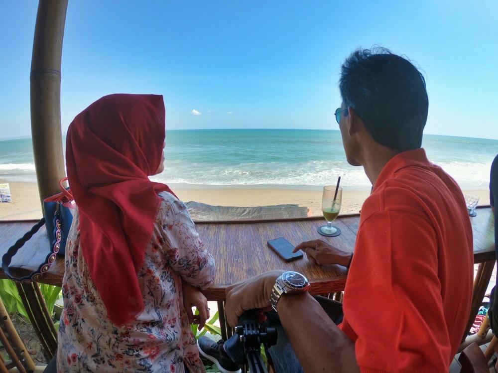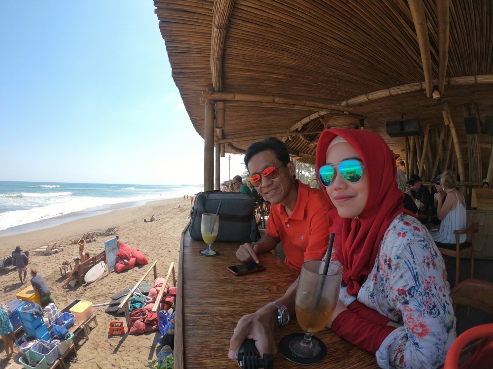 We sit by the tall bench overseeing the beach. Sipping cold drinks and finger foods, we enjoyed the strong breeze coming to the club. Although it was noon, and the sun was at its peak, we didn’t feel any warm at all.