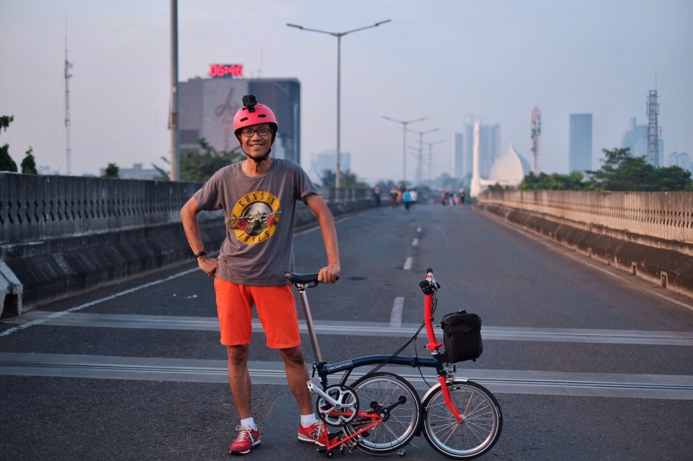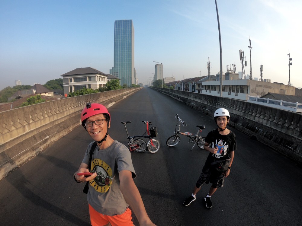 The ride to Sudirman CFD area was easy and breezy. Because mainly it’s flat or even downhill. There were not many people at the time we started, so we took the opportunity to take some pictures in the empty road.