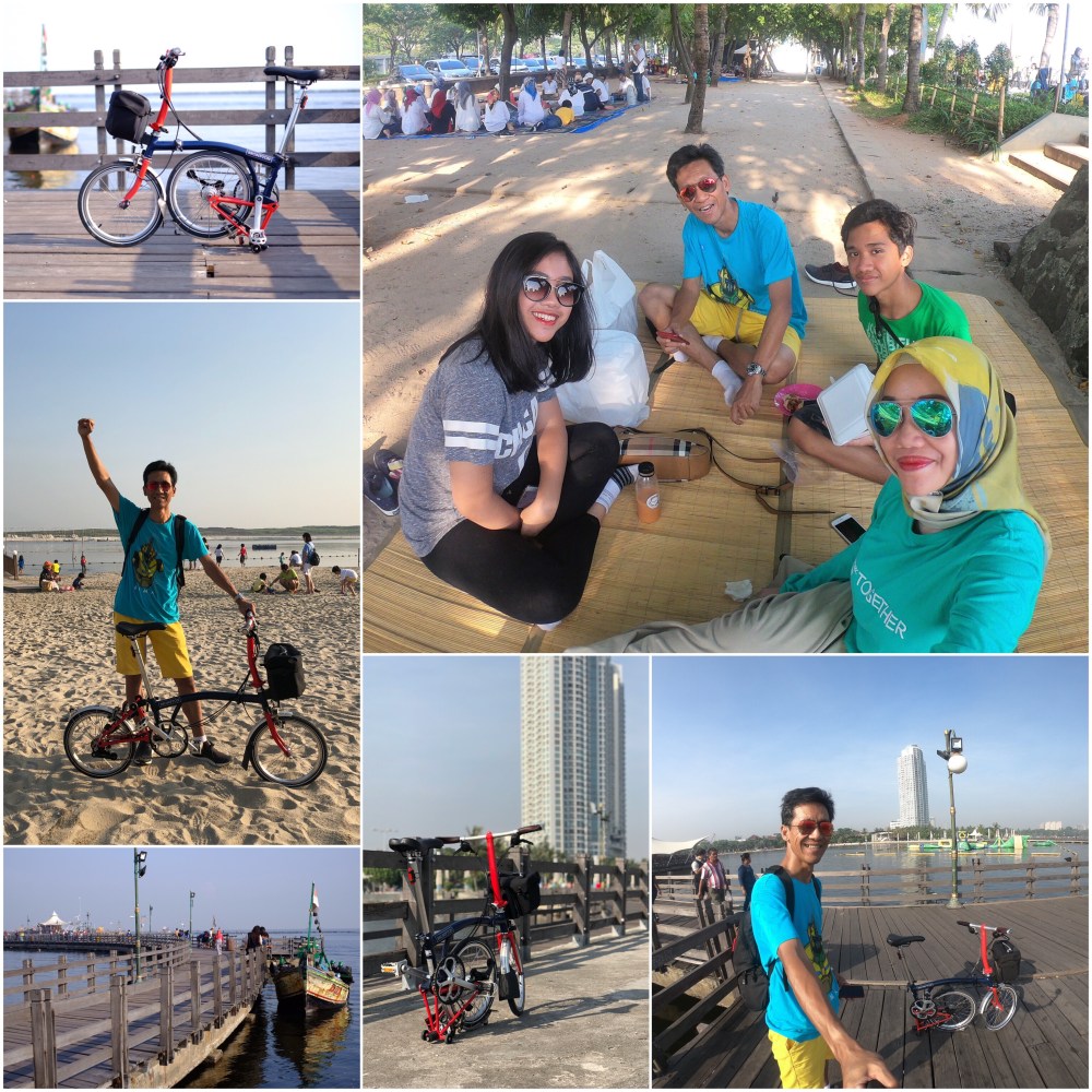 As this morning we plan to have family gathering at Ancol Beach, I brought my Superman Brompton for a ride along the beach park. It’s too bad the time is limited, hence I can only do short ride near the Ancol wooden pier. I think I spent more time taking pictures than riding my Brompton. LOL. Here are some of them.