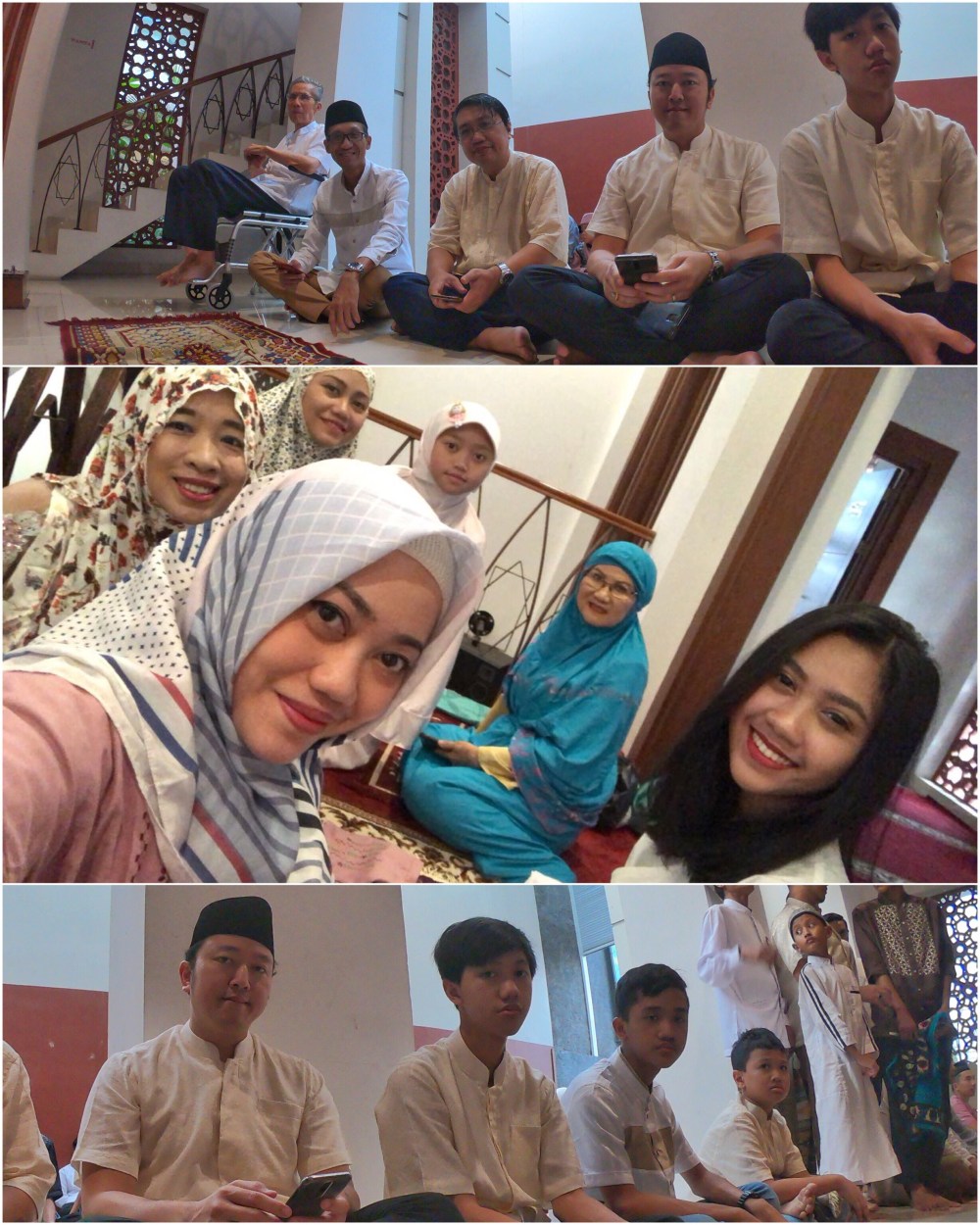 Pagi ini kita menunaikan ibadah Shalat Ied sekeluarga di Masjid Andi Ghalib Bambu Apus. Lengkap kebahagiaan hari ini karena semuanya dapat mengikuti shalat, tidak ada yang berhalangan, bahkan Bapak pun ikut beribadah walaupun dengan bantuan kursi roda.