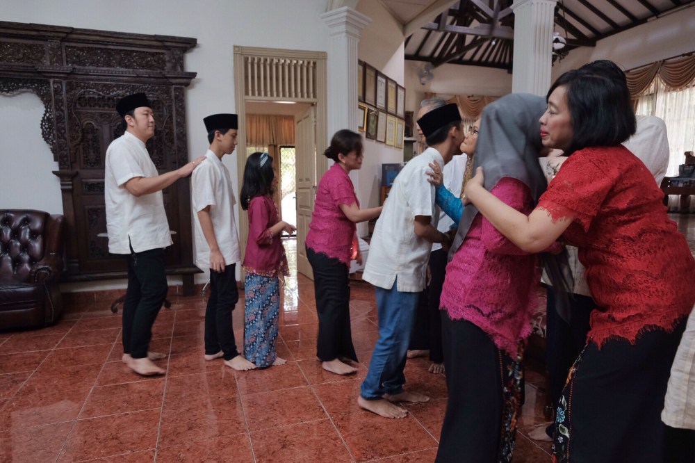 Setelah shalat Ied sebagai salah satu tradisi keluarga adalah bersalam-salaman dan saling memaafkan.