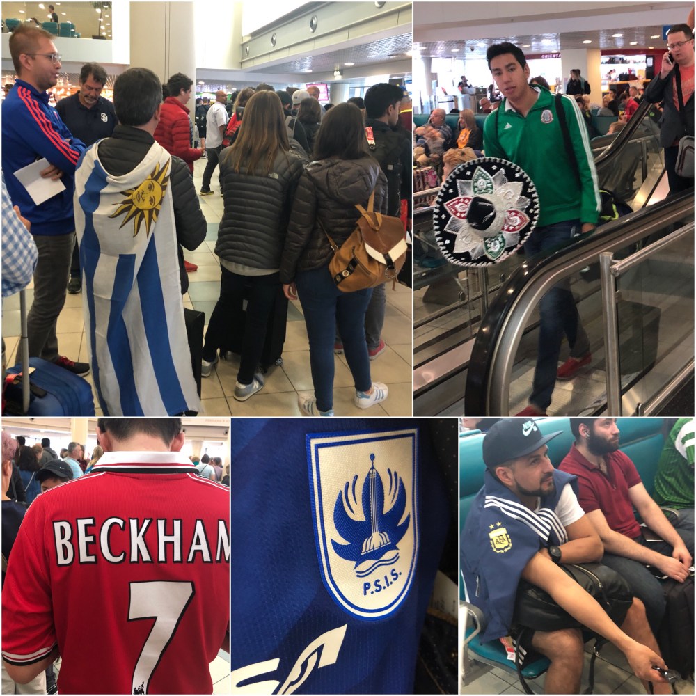 Taking these pictures while waiting for my delayed flight to Nizhny Novgorod. Love to see DOM airport becomes carnival of football. Football fans around the world gathers in sporting and peaceful spirit.