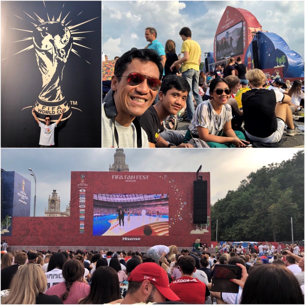 Saya, Aya dan Rafif menyaksikan bersama puluhan ribu fans sepakbola lain di Fan Fest Moscow. Suasana sangat meriah. House music dan rap berdentum keras menemani goyang ceria para fans sepakbola dari manca negara.