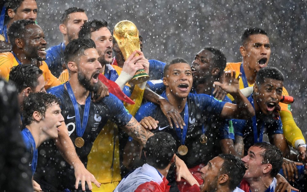 Hujan deras pada upacara penyerahan piala kepada Perancis tidak mengurangi kegembiraan tim asuhan Deschamps dalam merayakan gelar Juara kedua mereka. Walau hujan deras ini membuat pengunjung Fan Fest yang setia menunggu sampai upacara penyerahan piala tercerai-berai.