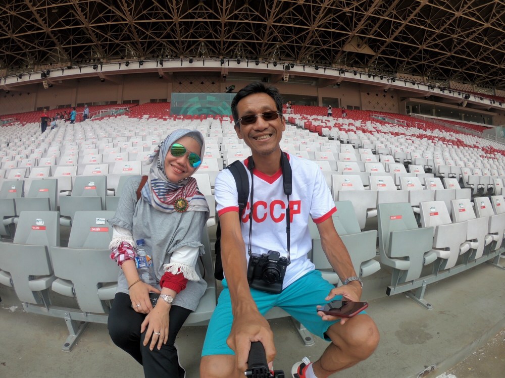 Setelah lomba lari gawang selesai, tontonan dilanjutkan dengan dasalomba pada event lompat galah yang diselenggarakan di sudut seberang GBK. Jadi kita harus berpindah ke tribun selatan. Sambil jalan-jalan berfoto ria di dalam stadion kebanggaan yang dibangun tahun 1962 ini. Stadionnya cantik, di dalamnya banyak spot yang fotogenik.