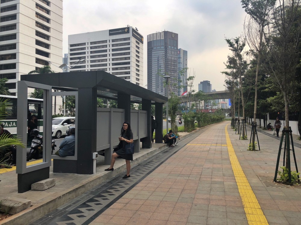 Kebetulan kantor saya memang tidak jauh dari stasiun BNI City, stasiun tempat keberangkatan kereta Bandara. Mungkin hanya 2-3 km jaraknya. Saya tinggal berjalan sedikit ke Jembatan Penyeberangan Orang (JPO), menyeberang jalan Sudirman, dan kemudian dilanjutkan dengan perjalanan singkat naik bis Kopaja. Trotoar baru sepanjang Jalan Sudirman yang luas dan bersih membuat saya lebih bersemangat berjalan daripada naik ojek atau taksi dari kantor.