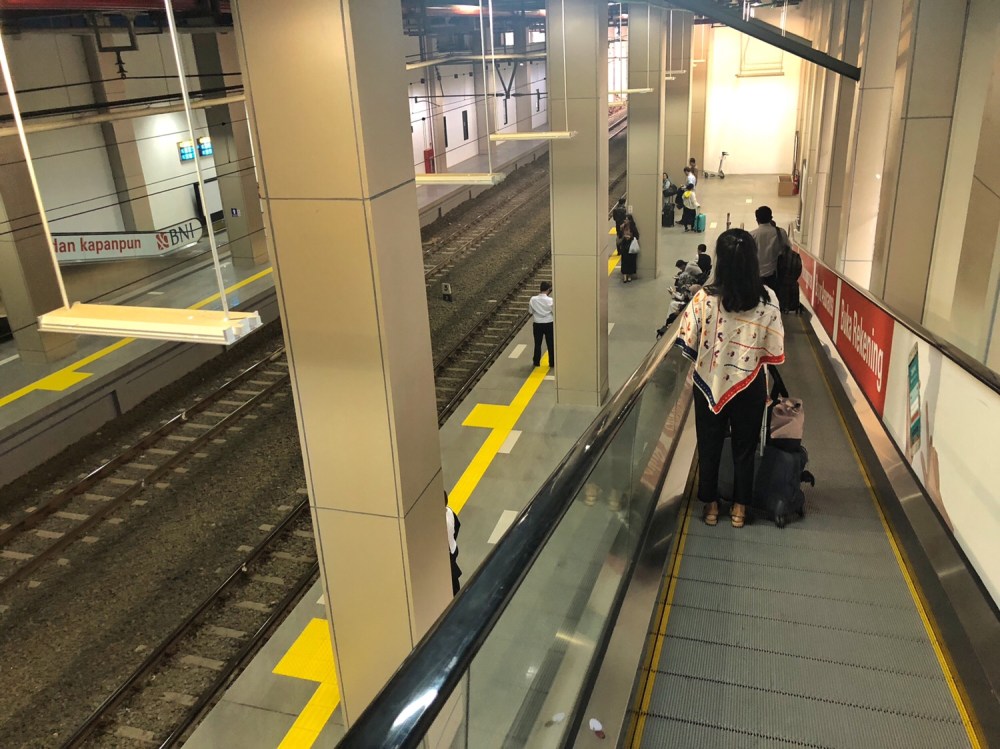 Mungkin karena belum terintegrasinya moda transportasi ini yang membuat peminat Kereta Bandara juga masih sedikit. Saya yang turun dari Kopaja harus melewati tangga tanpa jalur koper, dan menyeberang jalan raya dengan lalu lintas lalu lalang. Jalanan menuju stasiun pun terlihat sebagai jalur sementara yang seadanya. Kurang nyaman, but all in all it’s ok lah.