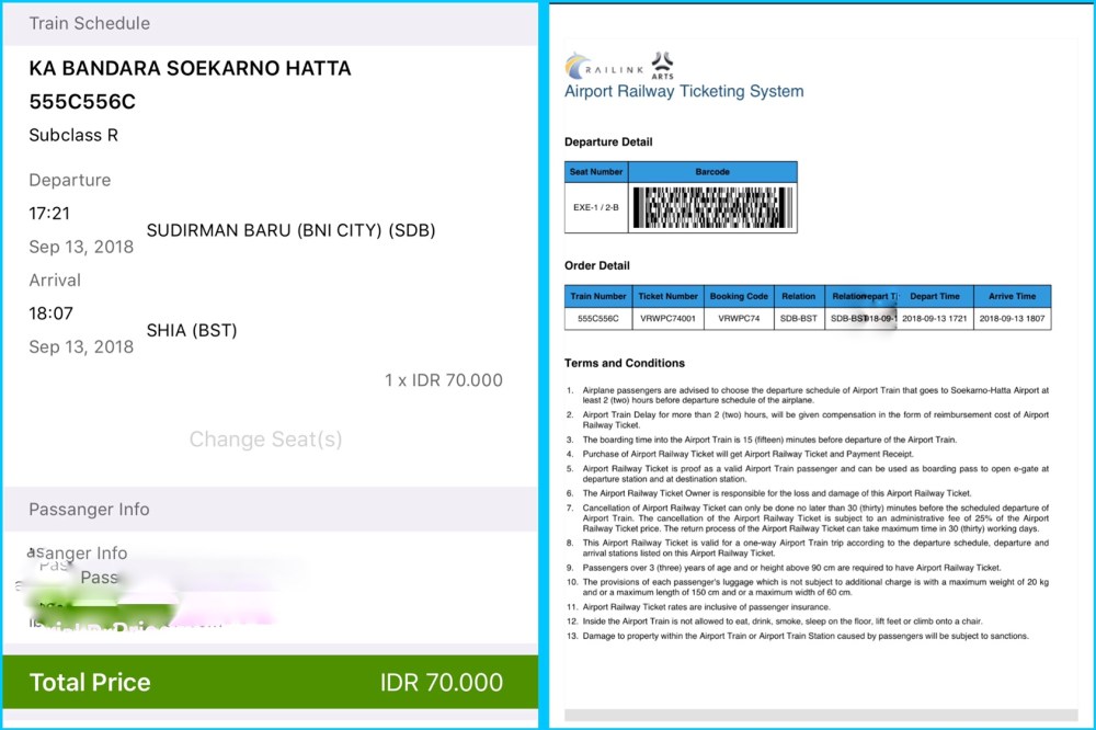 Oh ya, saya di pagi hari sudah membeli tiket kereta melakui aplikasi Railink yang bisa di undur melalui AppStore atau Google Play. Saya membayar tiket seharga Rp 70.000 + Rp. 5000 biaya administrasi dengan menggunakan kartu kredit.