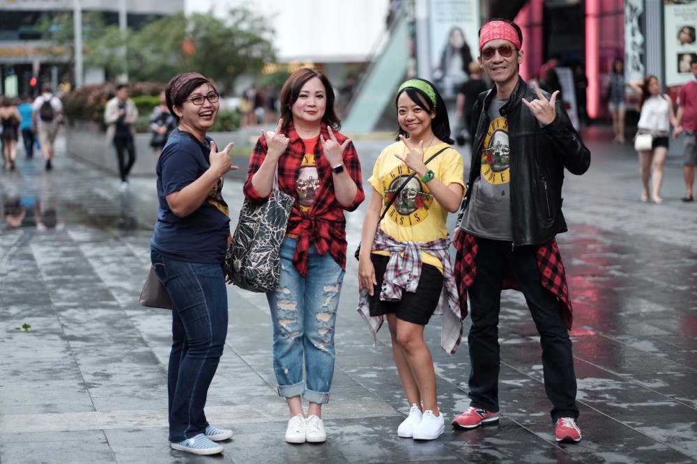 Tahun lalu waktu manggung di Singapura, saya pun tetap berusaha berdandan ala Axl. Berkaca mata aviator, ber-bandana dan kemeja flanel. Mirip? Ya enggak lah! LOL.