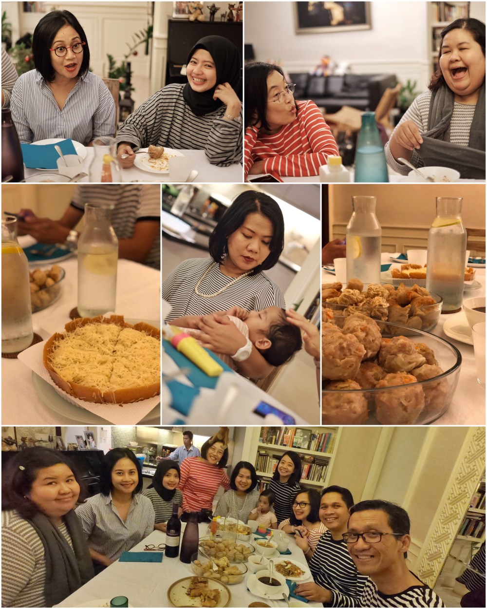 Sajian hidangan berlimpah dari tuan rumah, Bu Maya dan hasil potluck mengiringi acara tetap yakni: (1) review pencapaian resolusi 2018 yang penuh beban mental; (2) pencanangan resolusi 2019 yang penuh makna, drama dan canda (baca: rollover niat daftar haji), (3) tukar kado terencana.