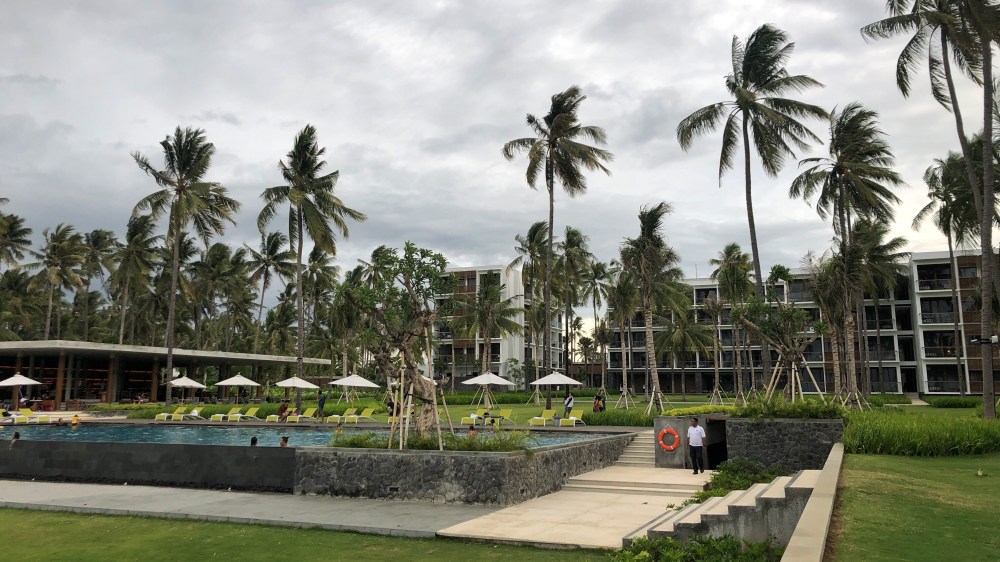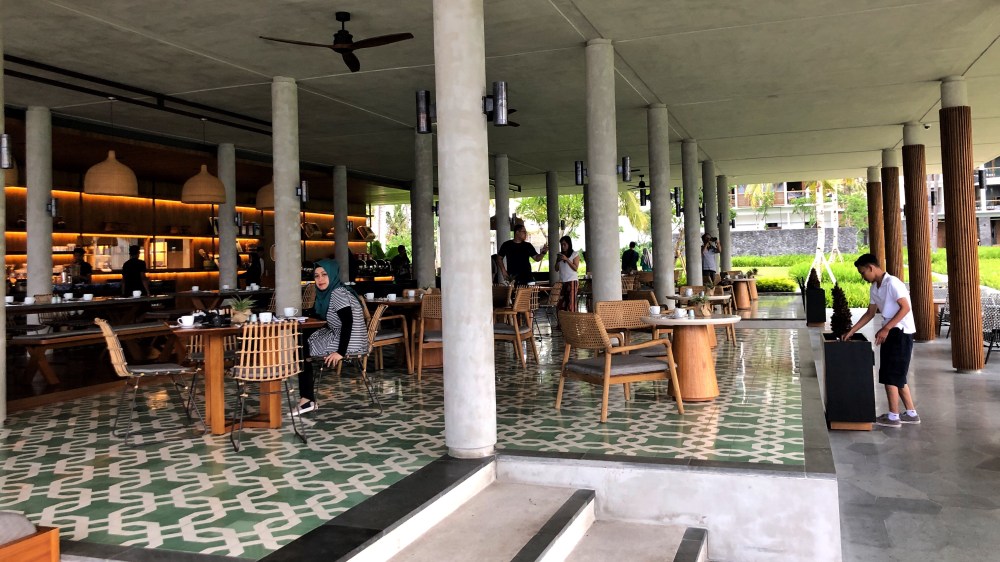 Nah kalau ini kafe yang letaknya di dalam hotel kami. Hotel Dialoog namanya, termasuk di dalam Alila Group. Kalau kafe ini paling cocok untuk “ngopi-ngopi” cantik. Suasananya dapet banget, karena terletak di halaman belakang hotel, dengan pemandangan infinity pool dan pantai Solong. Kalau cuaca cerah dari kafe juga bisa terlihat pulau dewata Bali.