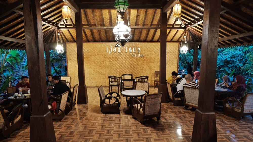 Memasuki kafe ini, sudah terasa suasana asyik dan santainya. Terdiri dari beberapa bangunan joglo (khas Jawa), kafe Ijen Isun menyediakan tempat duduk yang sangat “njawani” dan “ngomahi” (terjemahan bebas: serasa berada di rumah Jawa).