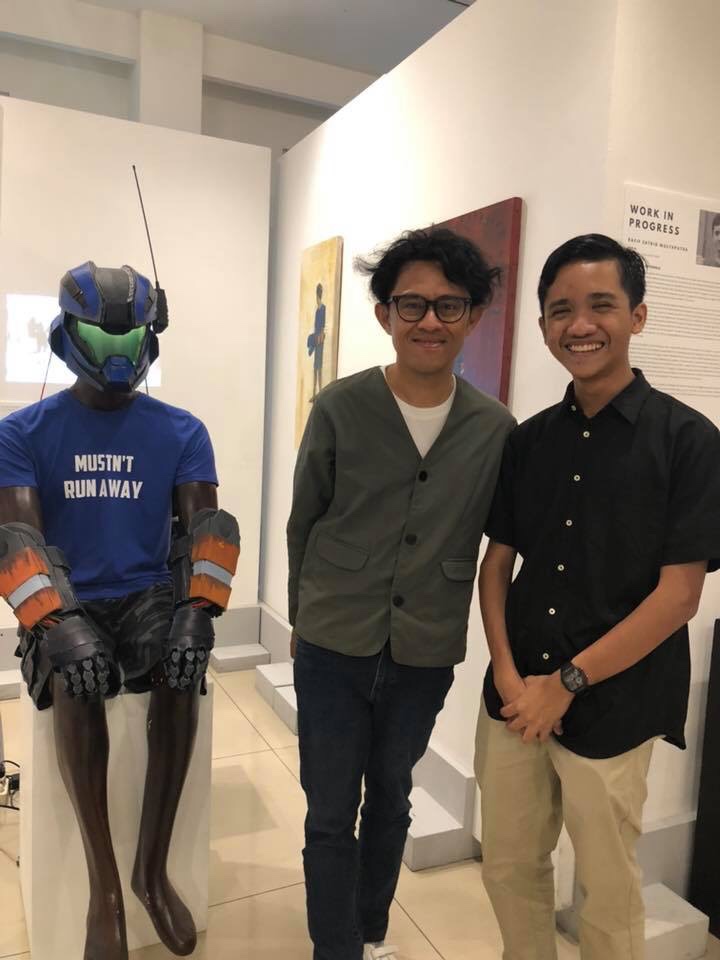 My personal favorite is his latest digital painting. Titled as “Together, Forever, Unfortunately”, it’s a colorful art with a picture of himself contemplating, surrounded with bunch of sci-fi characters. I asked him during the exhibition on its meaning, he eloquently said those characters are actually his deep feelings that always in battle to get space in his thoughts. The red fighter is “negativity”, the Optimus-Prime like is called “responsibility”, while the big guy ready to strike is the “anger”. And so on. Got it.