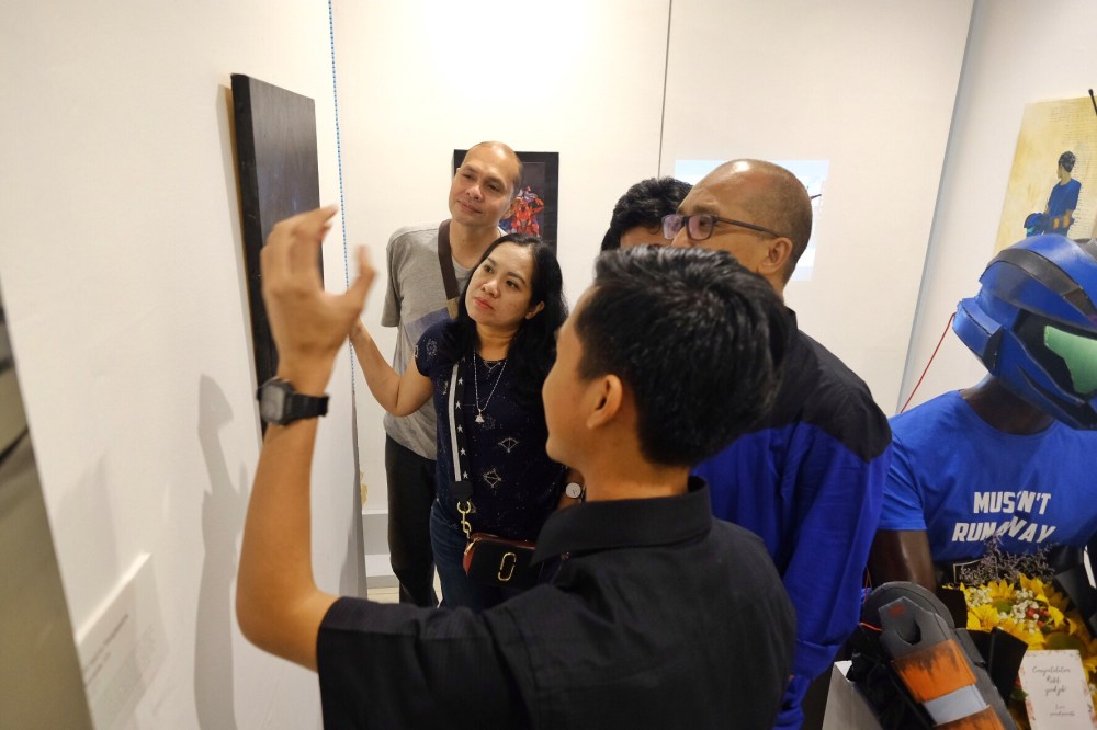 My big brother and sister’s family came to Galeri Hadiprana earlier today, to see Rafif’s art exhibition and listen to the explanation first hand from the artist.