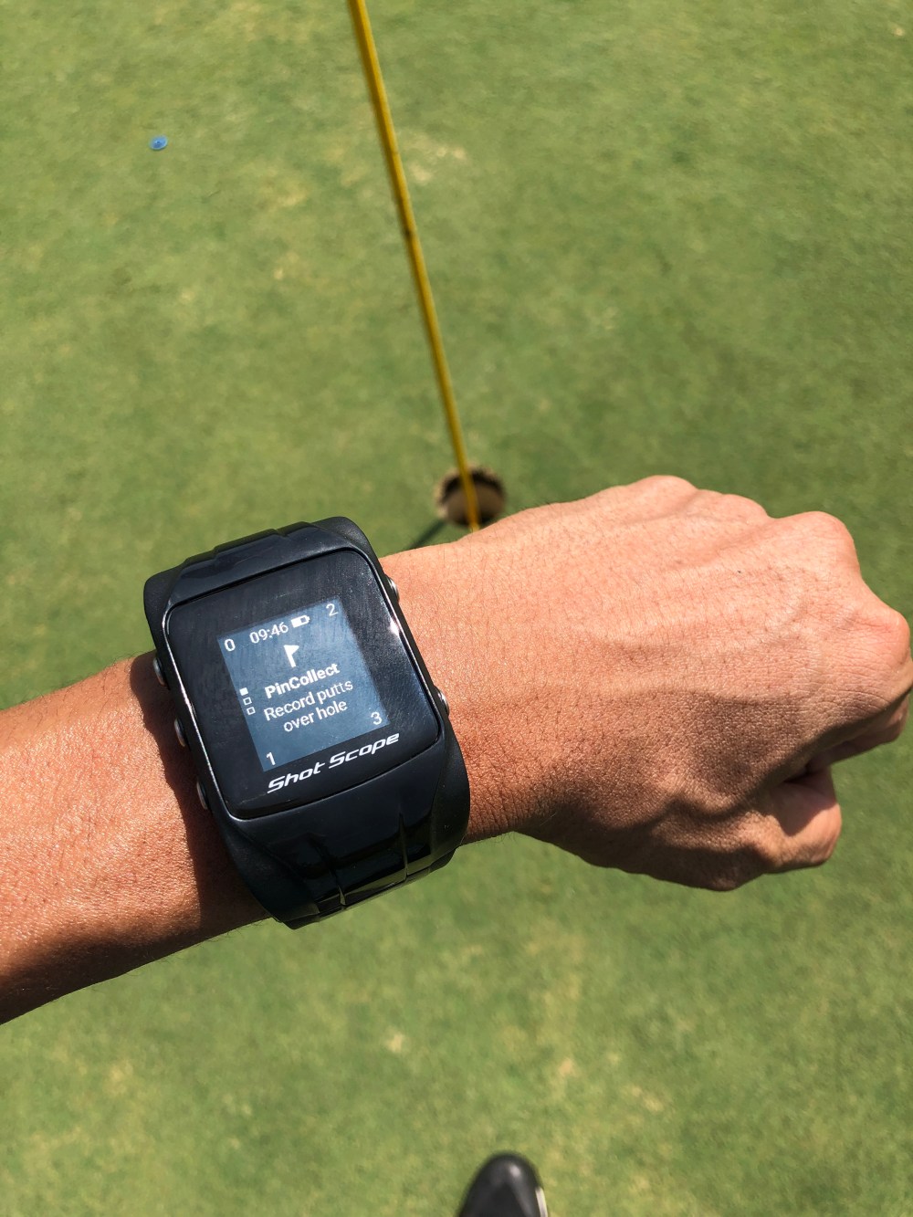 Saat SSV2 mendeteksi kita berada di atas green, layar jam SSV2 akan berubah ke “Pin Collect” mode. Mode ini meminta kita untuk memasukkan jumlah putts yang kita lakukan di green tersebut, saat telah memasukkan putt terakhir, dan hendak mengambil bola dari lubang. Pilihannya adalah 1, 2 atau 3 putts (Bisa lebih, tapi membutuhkan prosedur tambahan – tapi toh jarang juga melakukan 4 putts atau lebih).