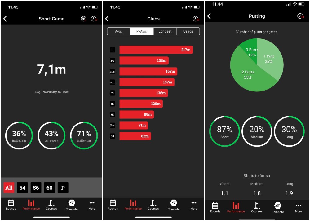 Dengan teknologi GPS ini, ketiga jenis perangkat ini membantu pemain golf untuk dapat merekam permainannya. Mulai dari jumlah pukulan, sampai dengan statistik permainan golf seperti Green-in-regulation (GIR), Fairway hits, Average driving distance, sampai dengan Strokes Gained.