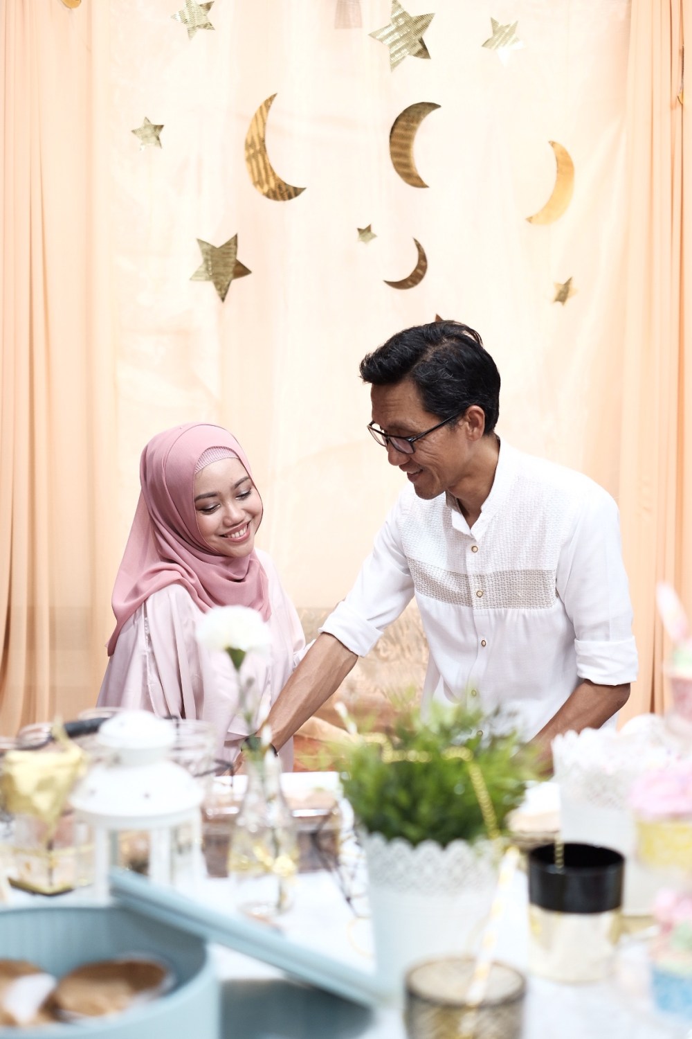 With simple decoration set up small round table and in Bambu Apus’ living room, we have photo session with all family members.
