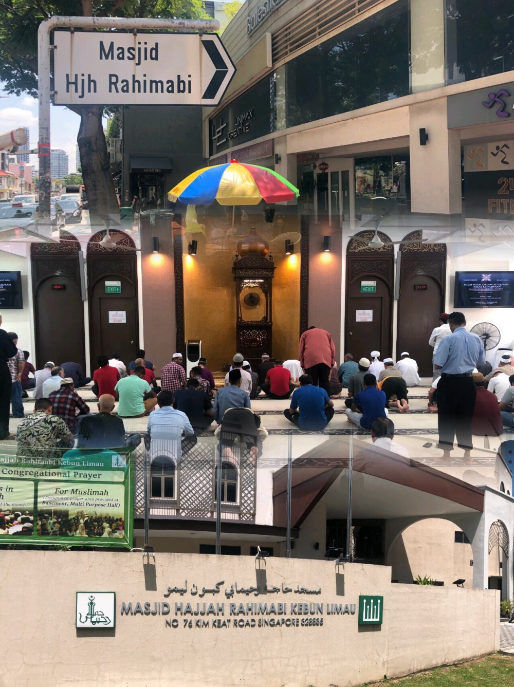 Apartemen yang kami sewa di Singapura berada di daerah Lavender. Pada saat mencari makan semalam, di seberang jalan saya melihat plakat penunjuk arah. Tulisannya adalah Masjid Hjh Rahimabi. Saat itu saya sudah berniat, “besok Shalat Jumat ke situ ah”