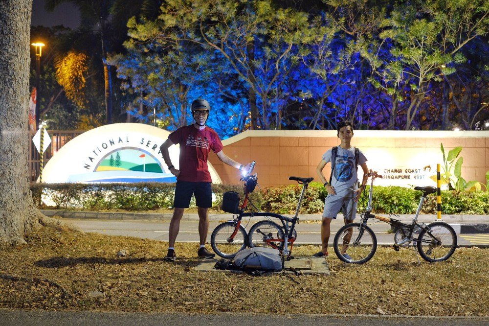 Karena banyak berhenti untuk foto-foto, dan juga karena kita agak kesorean mulai gowesnya, kita jadi kemalaman. Sampai di Changi waktu sudah menunjukkan pukul 9 malam.
