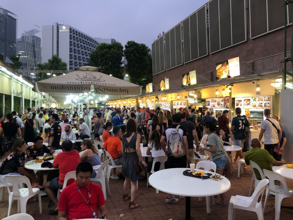 Belajar dari pengalaman tersebut, saya mencari tempat makan lain. Yakni di Makansutra row di sebelah Esplanade. Pusat jajanan bergaya hawker centre. Yang biasanya memang sudah ramai, menjadi semakin ramai dengan tambahan stall makanan untuk mendukung penyelenggaraan Singapore GP. Bermacam-macam jenis dijajakan. Dari mulai chili crab ala Singapura, kebab ala India sampai dengan sandwich dan burger.