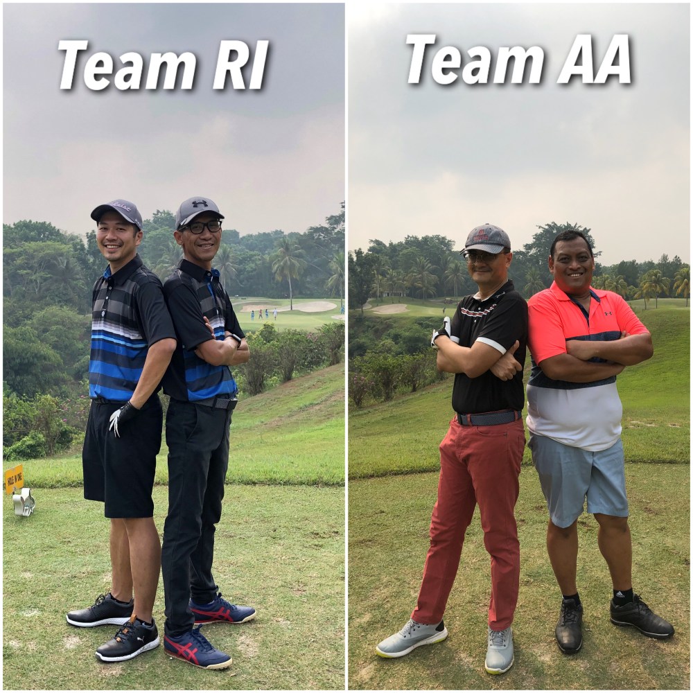 Pagi ini kita kembali bertanding. Kali ini Riverside GC Cimanggis yang ketempatan. Persiapan Team RI terlihat lebih serius. Terbukti dari seragam yang dipakai matching dari kepala ke kaki. Hahaha. Sudah unggul dari sisi penampilan.