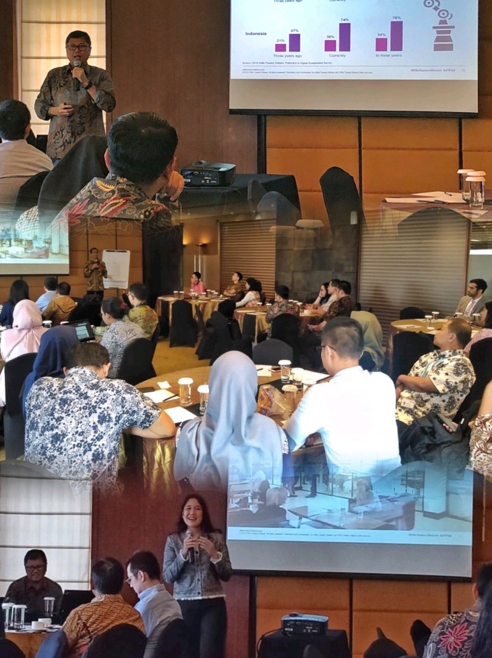 Tampil sebagai pembicara tamu adalah Bapak Henry Hanafi dari Willis Towers Watson dengan topik “Becoming Digital: Defining and Powering Digital Ambitions in the New Work Ecosystem”. Pak Henry menyampaikan hasil survey global yang dilakukan oleh WTW.