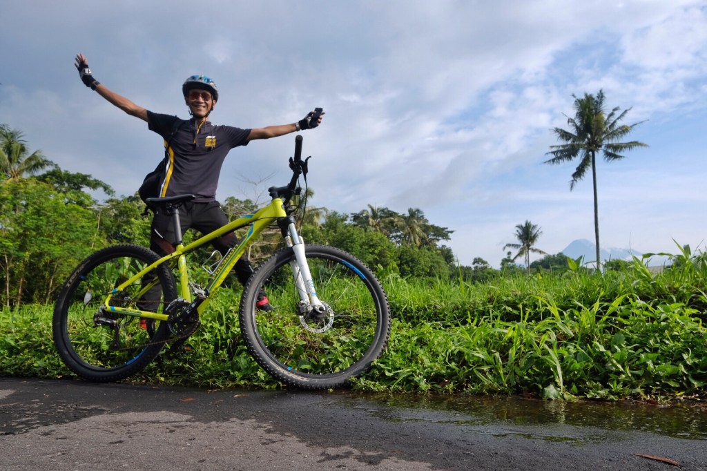 Jadi saat saya tanya rute bersepeda di lereng gunung Merapi dari hotel saya di Palagan, Mas Nyonyo memberitahu saya secara rinci. Spot-spot dan jalan-jalan yang saya harus lalui. Yang blusukan, bukan sekedar jalan utama. Termasuk juga arahan penyemangat, “nah di jalan ini, kalau cuaca cerah, Gunung Merapi akan terlihat indah”.