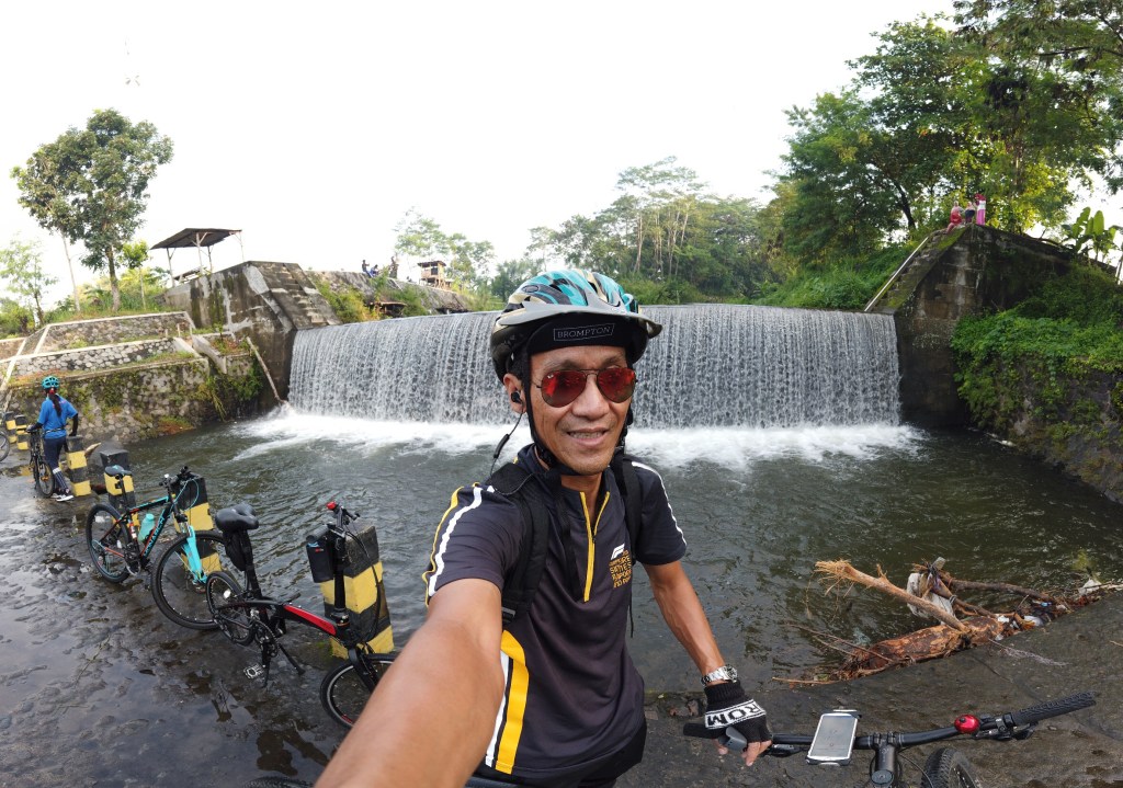 Pemberhentian pertama untuk foto adalah di Desa Wisata Watu Ledhek. Di sini ada air terjun buatan yang cukup instagramable. Sudah menjadi photo spot wajib untuk para goweser yang lewat sini. Saya pun tidak ketinggalan: