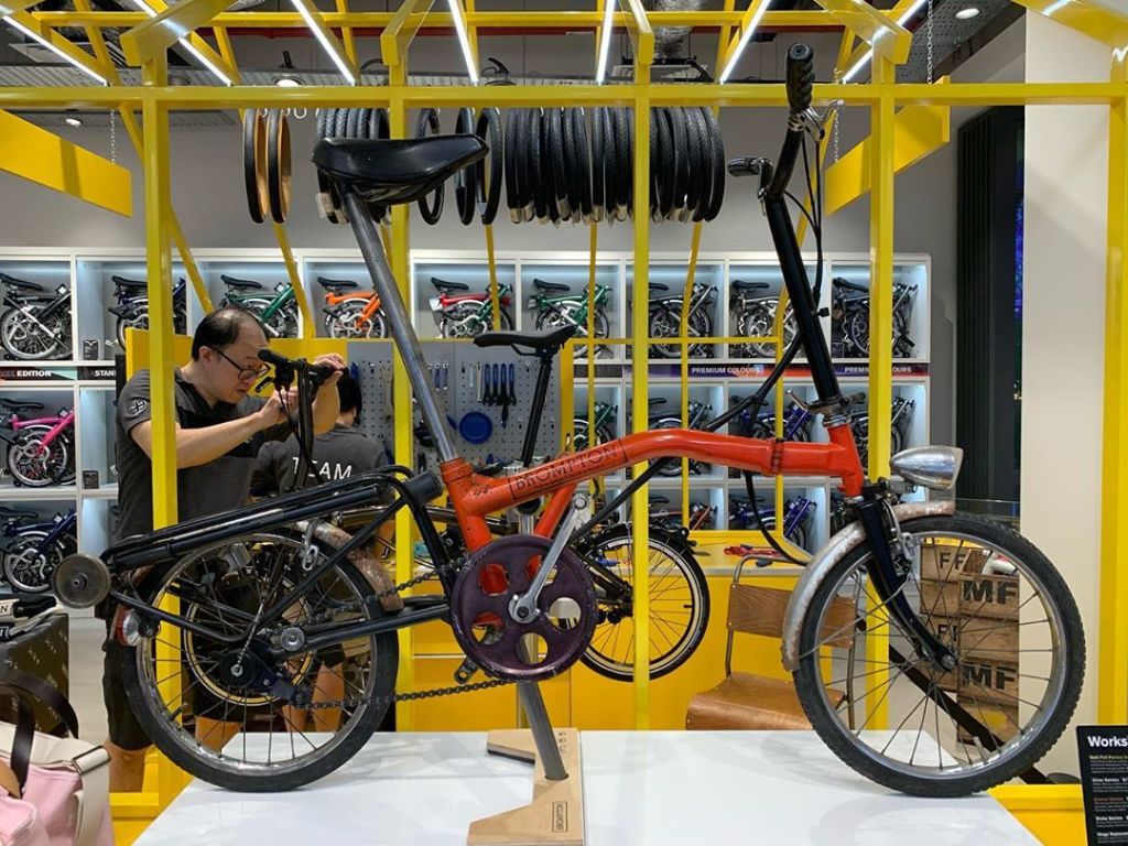 Brompton MK1 dipajang dengan manis di Singapore Junction