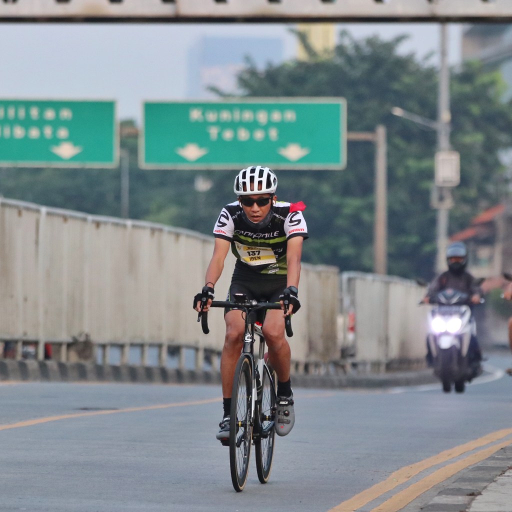 Pertama saya bermasalah dengan shoe’s cleat saya. Nah ini karena memang masih newbie di road bike dan pakai shoe’s cleat. Somehow, saya kurang kencang dalam memasang shoe’s cleat. Jadi di akhir Leg 1 saya tidak bisa melepaskan sepatu dari pedal. Untung dibantu oleh peserta lain dan panitia, kalau nggak sudah gedubrak, jatuh. Walau selamat, tapi saya jadi butuh waktu untuk melepaskan kaki saya dari sepatu yang tergantung di pedal. Waktu T1 saya jadi nomor 2 paling lambat dibanding peserta lain. Sial.