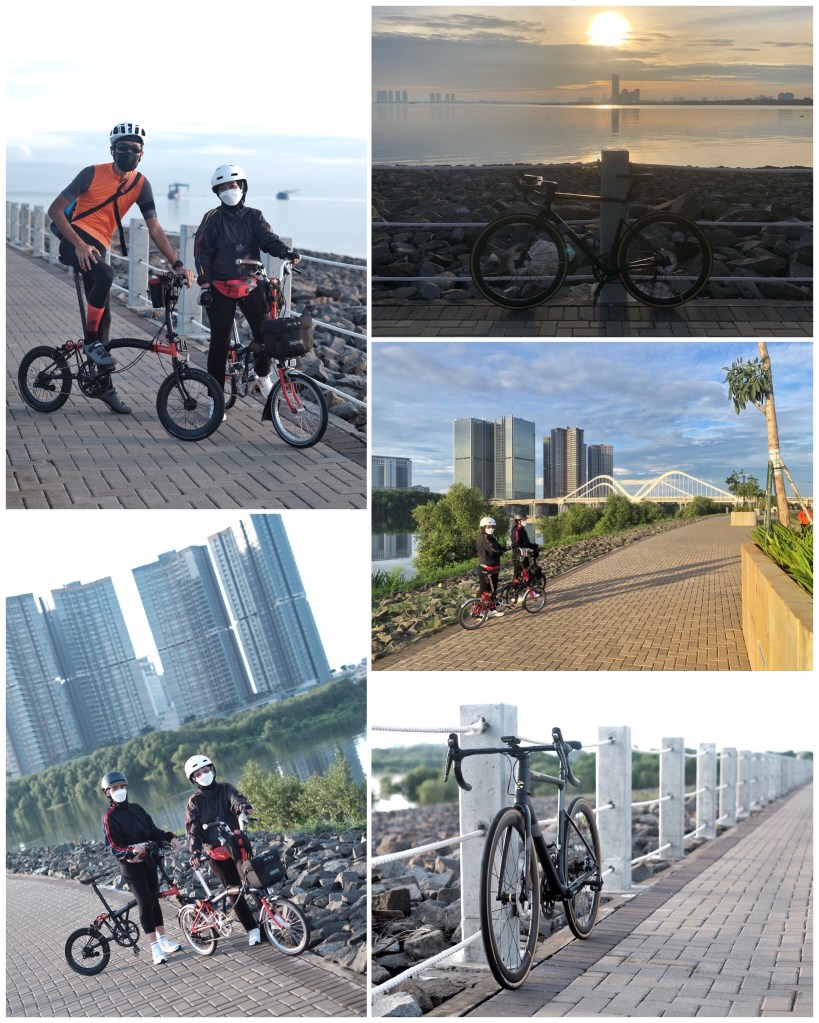 Sabtu kemarin, jam 5.45 kita sudah sampai di PIK. Parkir di ruko San Antonio dan mulai bersepeda santai menyusuri promenade sampai ke Kompleks Jalesna Pantai Maju, melihat matahari terbit di ufuk timur Jakarta.