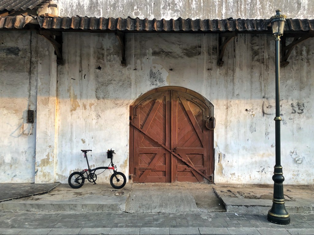Ide foto ini saya dapat saat melewati selasar Kota Lama yang amat fotogenik. Sinar matahari pagi berada di depan jalan yang membuat obyek terbentuk dalam silhouette. Awalnya saya foto dengan menunggangi si Batman. Kok malah pose hasilnya wagu 😬. Jadilah terpikir untuk berpose sambil melompat.