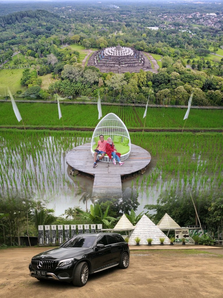 Dengan perasaan kecewa kami pun turun. Mengarah ke Magelang. Mencari makan siang. Elok beride untuk makan di Svargabumi, suatu restoran yang lokasinya instagrammable di dekat candi Borobudur.