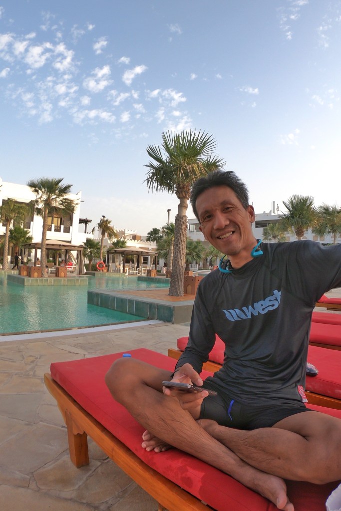 Akhirnya setelah selesai semua urusan, saya kembali ke hotel. Doha di bulan April masih transisi dari musim dingin ke musim panas. Jadi temperaturnya sudah mulai menghangat. Tapi sore hari jadi waktu ideal untuk orang-orang bersantai di pantai. Atau di kolam renang. Karena memang tidak ada agenda apa-apa saya lalu berenang. Bersama dengan banyak tamu hotel ataupun warga Doha yang sedang bersantai di pinggir kolam hotel. Yah hitung-hitung menikmati life style ala Doha. Hehehe.