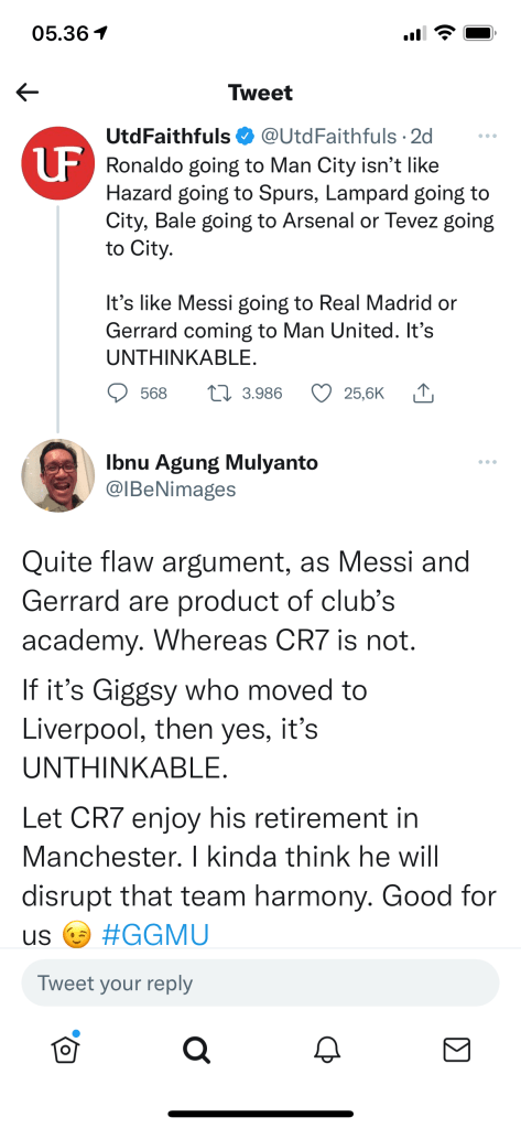 Kamis sore kabar kalau Cristiano Ronaldo akan kembali ke Manchester menyeruak. Masalahnya not the right side of Manchester. Tapi Manchester City. Berita “Cristiano Ronaldo agreed to a deal with City” beredar di lini masa bahkan sampai Jumat pagi kemarin.