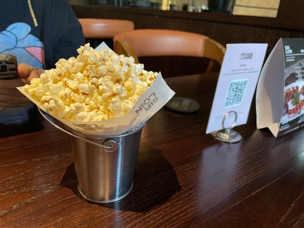 Sambil menunggu steak datang, kami disajikan pop corn sebagai appetizer. Good gesture. Walaupun kalau ada, saya lebih memilih roti dengan mentega. Sayangnya tidak.