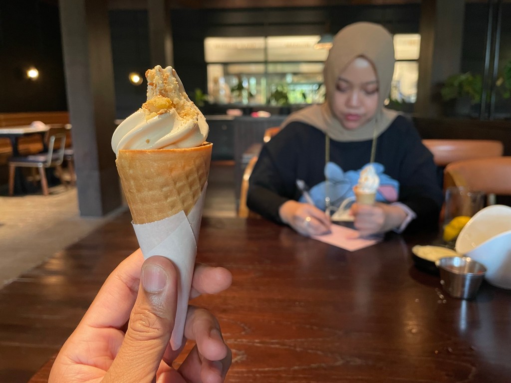 Kalau membeli paket daging yang dibawa dalam nampan tersebut, kita akan mendapatkan gratis 1 buah pilihan sauce dan 1 buah pilihan side dish. Juga es krim di akhir hidangan sebagai dessert.