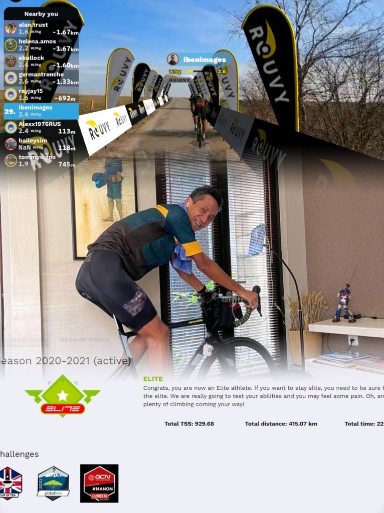 Akhirnya saya menjadi kaum ‘Elite’ di Rouvy, aplikasi simulasi sepeda virtual yang saya tekuni.