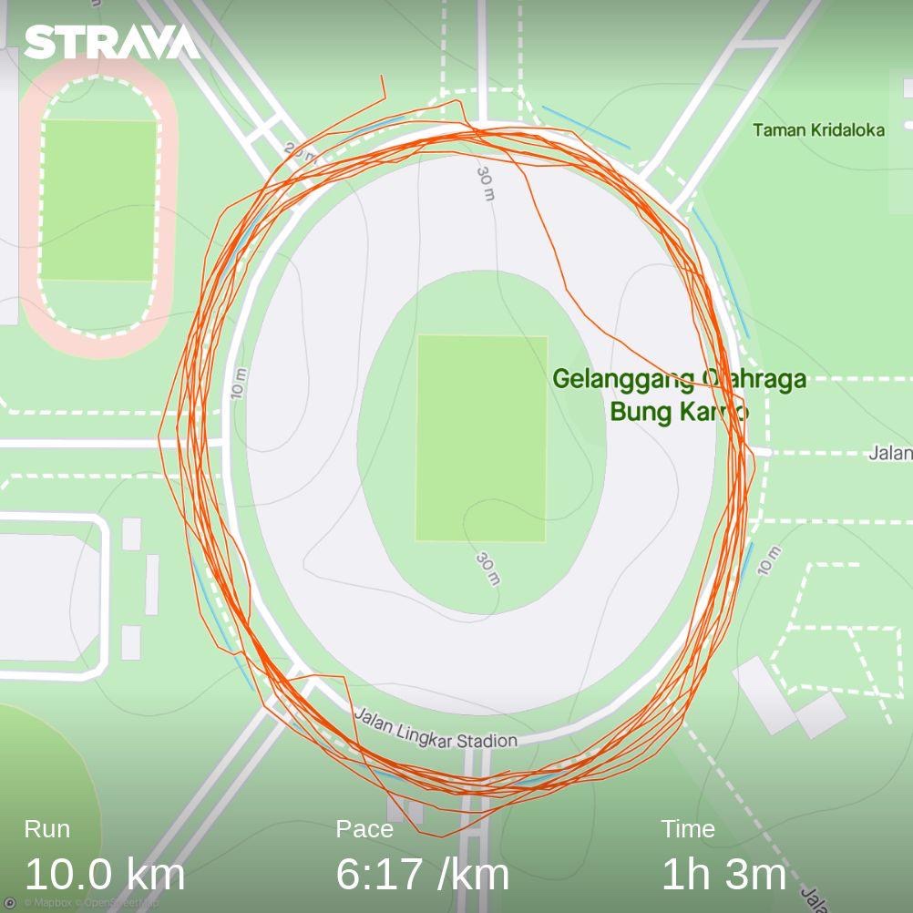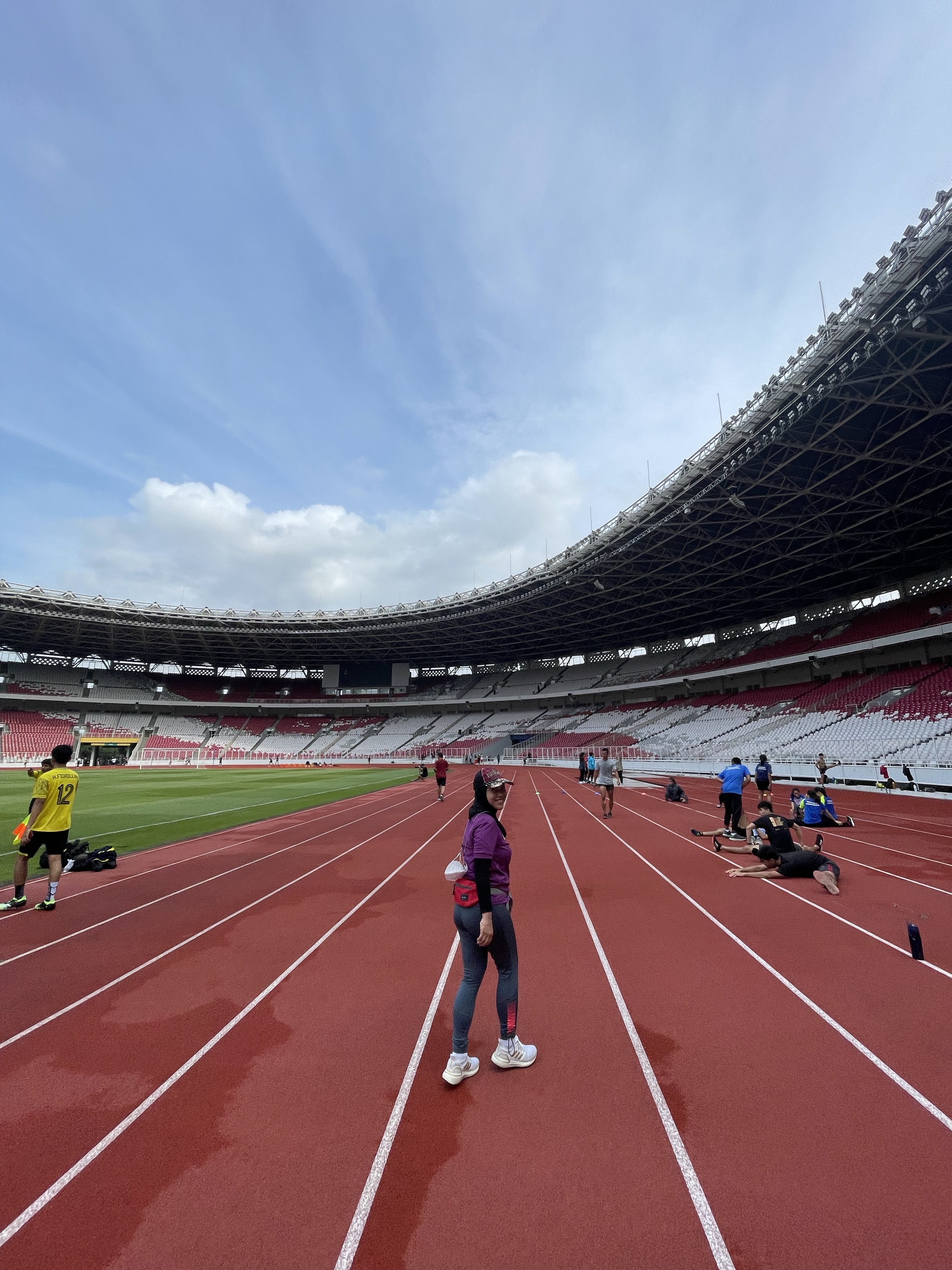 I completed my run on the outer track of GBK complex, but Elok finished hers inside the track of majestic stadium (hence the beautiful pictures).