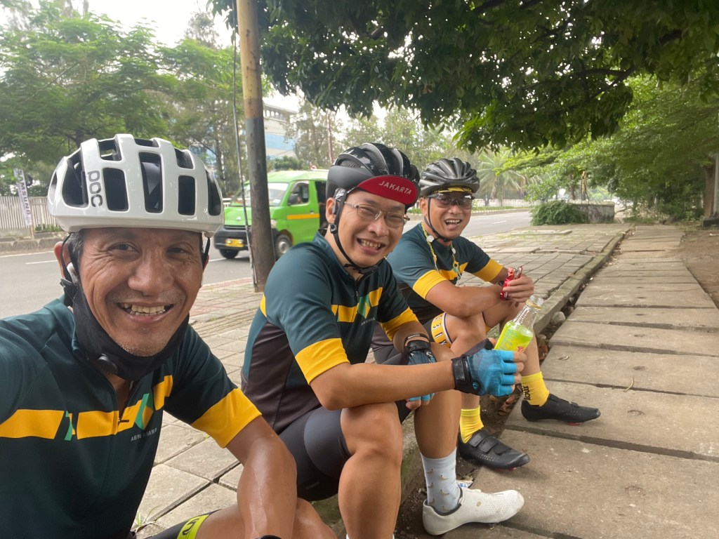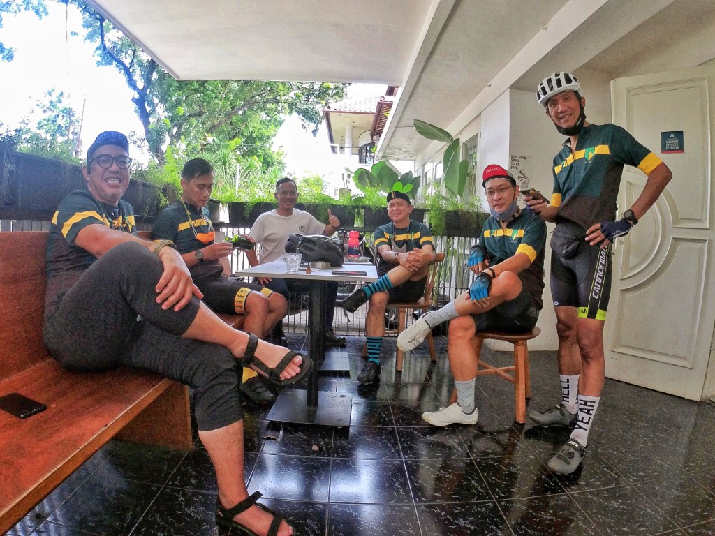 Gowes ditutup dengan ngopi bareng teman-teman T4 yang tidak ikut gowes fondo tapi menunggu kita di situ. Menyenangkan.