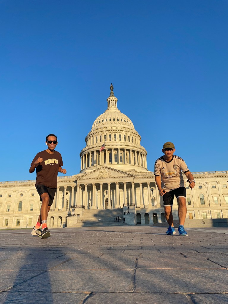 Bersama teman baik Ubaidillah Nugraha yang bergabung dengan rombongan, kita mengawali hari dengan berlari melewati major landmarks dari ibukota Amerika Serikat: Washington Monument, Capitol Building, Lincoln Memorial, dan tentu saja White House.